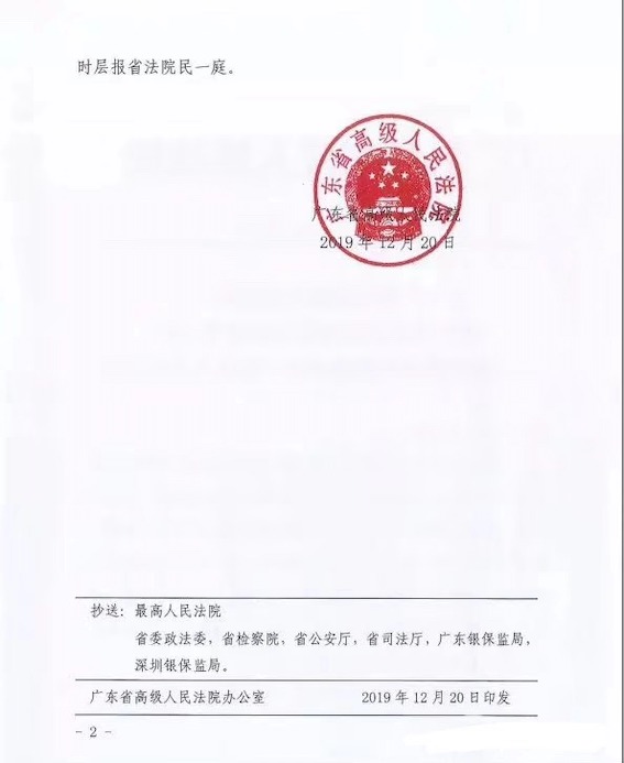 廣東省高級人民法院辦公室 2019年12月20日印發
