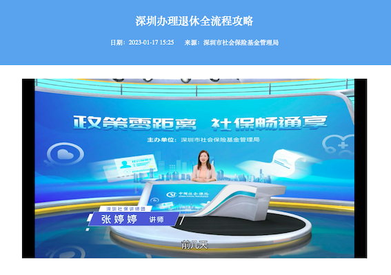 原始視頻:深圳辦理退休全流程攻略