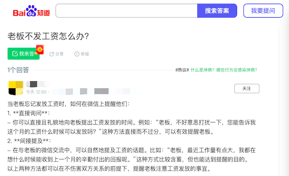 其次,現下知乎明顯要比百度知道更為火爆、人氣更高,當用戶提問一個問題以后,會收到很多人的回答,其中有不少是認證為律師的知乎博主。但問題在于,第一,題主提問一個勞動法問題,絕大多數情況都是因為自己目前正面臨這樣的問題,因而他們想了解的肯定是自己該如何去解決,而不會是想學習勞動法知識。但很多答主并不是針對題主的提問直接給出言簡意賅的專業解答,而是寫一篇小作文,進行長篇大論,而且其中的很多內容明顯就是注入水分,完全沒有必要。這無疑會增加用戶的閱讀時間和閱讀難度。第二,如果用戶是想學習勞動法知識,在提問一個問題以后,獲得了幾篇甚至十幾、幾十篇的長文回答,顯然是好的。但如果你只想知道自己面對的問題該怎么辦的話,那肯定是回答越有針對性越好、越言簡意賅越好。否則如果總是要看完幾千字才能找到答案,那跟自己在百度搜索網頁然后通過看幾篇文章來尋找答案也沒什么區別了。第三,一個問題有很多人回答,既有好的地方,也有不好的地方。說“好”,當然是因為有多種答案、多種意見和多種觀點,內容豐富,題主可以“兼聽則明”;而說“不好”,是因為這樣一來,可能就會使不少題主不知道該相信誰提供的答案了,因為題主本身就是由于不懂所以才來提問的,如果很多人給出了不同的答案,那題主可能就更迷糊了。而深圳勞動仲裁律師網的優勢和劣勢也正在于此。當網友在深圳勞動仲裁律師網提問以后,只會獲得一位勞動法律師言簡意賅的專業解答,這樣的好處是用戶能快速的獲得答案。但不好之處在于,因為沒有其他人的回答做比較或者做印證,因此部分用戶可能會不能確定我們提供的解答是不是準確和專業的。這也是我們要努力改進的地方。