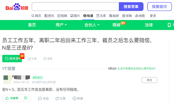 以上所寫并非我們自吹自擂,我們的勞動法律師在百度知道或者知乎上回答勞動法問題時,給出的解答是很受用戶們的歡迎的。此外,要想印證上面寫的對不對,只要提交一個勞動法提問,自己親身體驗一下就知道啦!