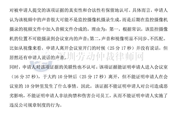 除了舉證以外,對其他當事人提交的證據發表質證意見,也是一項很重要的技能。當然,你可以對其他當事人提交的證據一概不認,但這樣發表質證意見不見得是有效的。你認可了,當然不需要理由,仲裁庭或者法庭可以直接確認;但如果你不認可,就要說明不認可的理由,否則對仲裁員或者法官不會產生影響,因為他們完全可以根據自己的認識采信或者不采信某一項證據。下面我是針對一段監控錄像發表的質證意見,看完就能大概明白對某項證據發表質證意見的意義何在了: