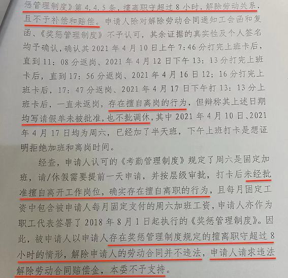 一個真實的案例。員工甲,因為跟公司要加班費,被公司以監控錄像錄到他多次擅自離崗,嚴重違反規章制度為由辭退。他在仲裁的時候沒請律師,也是免費咨詢了很多律師,而所有的律師都告訴他應該主張違法解除勞動合同的賠償金(2N)。結果他仲裁輸了,仲裁委認定公司解除勞動合同是合法的。