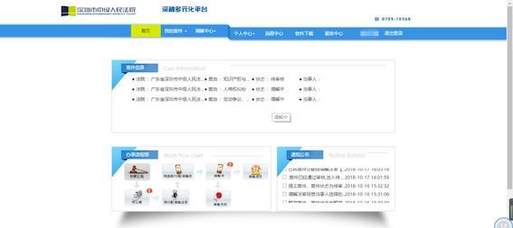 首頁會顯示與您相關的所有案件信息和狀態。您可以在首頁查閱辦事流程圖和通知公告。