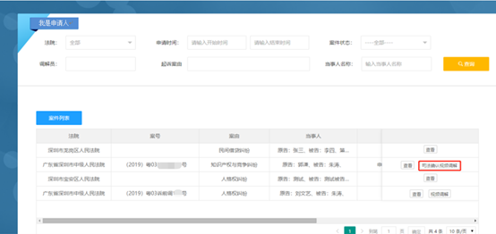 (1)如果您是申請人,請點擊“我是申請人”。在該頁面,您可以查詢到你作為申請人的所有案件并辦理相關業務。您可以在此查看案件信息,查看和下載訴訟材料,還可以申請視頻調解、遠程司法確認。
