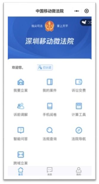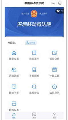 在微信中搜索“深圳移動微法院”小程序,并點擊進入。