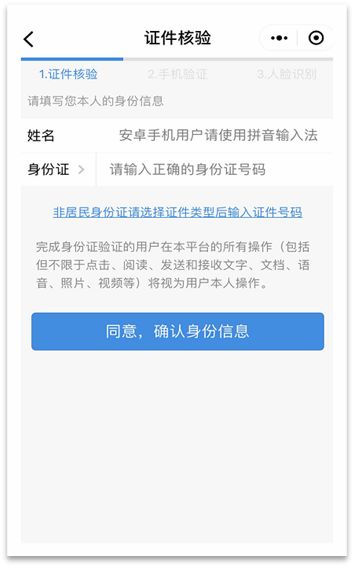 點擊右下角“我的”標簽頁進行身份驗證,在證件核驗界面輸入本人的姓名和身份證號,點擊“同意,確認身份信息”。