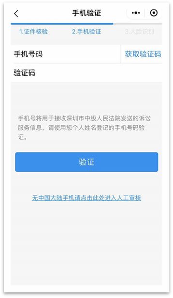 在手機驗證界面,輸入手機號、驗證碼后點擊“驗證”,確認授權后點擊“下一步”,進入人臉識別環節,請您根據界面指引完成驗證。