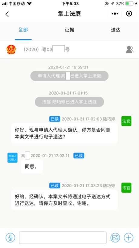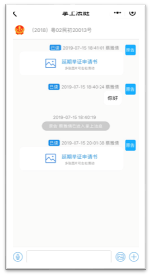 您可以發送文字、語音、圖片等與法官進行在線溝通。