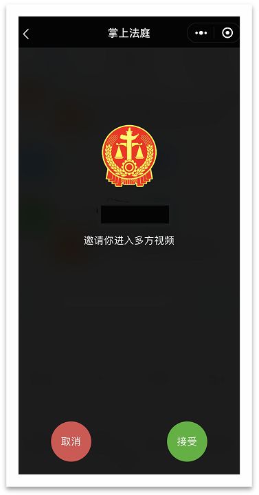 調解法官發起多方視頻時,您點擊“接受”,即可進入視頻界面,在線調解。