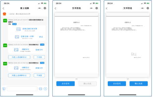 調解成功的案件,法官將上傳調解協議,您閱讀后進行電子簽名確認。